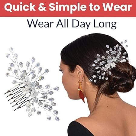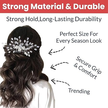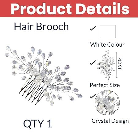 This elegant floral hair pin by Temperia features a white and silver design adorned with delicate pearls. Made from metal and plastic, it provides a sturdy and stylish grip for adult hairstyles. Ideal for weddings, parties, or everyday decorative use, adding a touch of sophistication to any look.