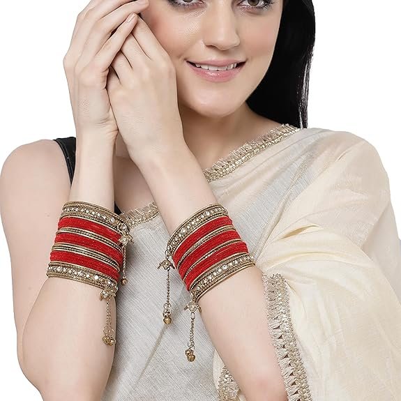 This gold plated brass diamond bangle bracelet set is crafted to elevate your festive and special occasion look. Featuring a refined pave setting with diamond detailing and a secure fold-over clasp, it offers elegance, comfort and durability. Perfect for weddings, anniversaries and gifting moments, this jewellery set adds timeless charm to any outfit.